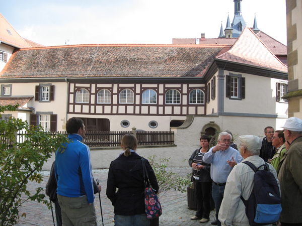 Die evangelische Stadtkirche wurde kurz vor der Reformation im gotischen Stil erbaut mit filigranen Netzgewölben und einer wohlklingenden Orgel, die wir hören durften. Da Wimpfen eine Hochburg der Reformation war, hatte die Gegenreformation wenig Chancen und die Wimpfener übermalten einen der zwölf Apostel kurzerhand mit dem Gesicht von Martin Luther.